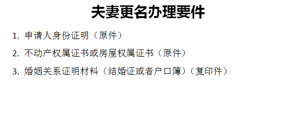 夫妻更名办理要件
